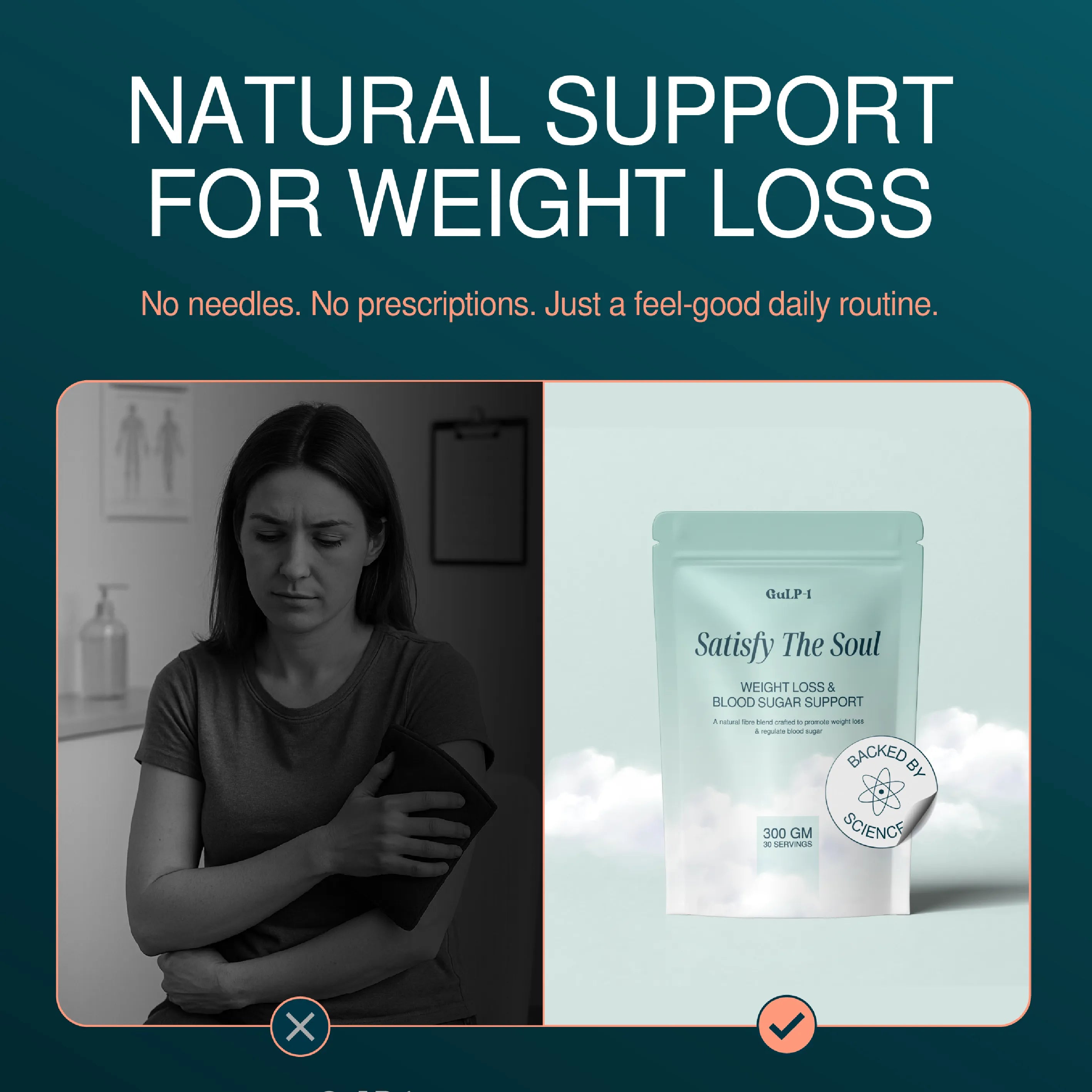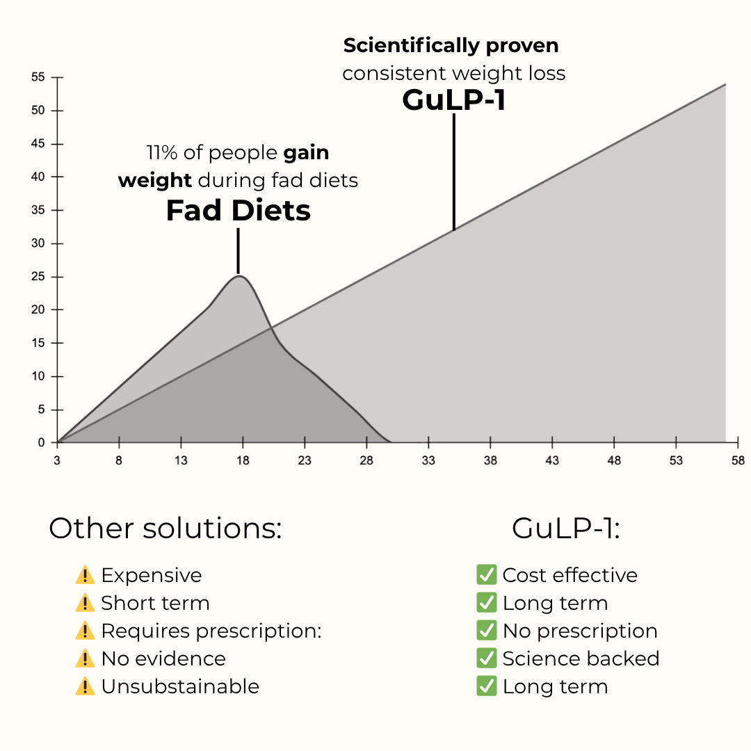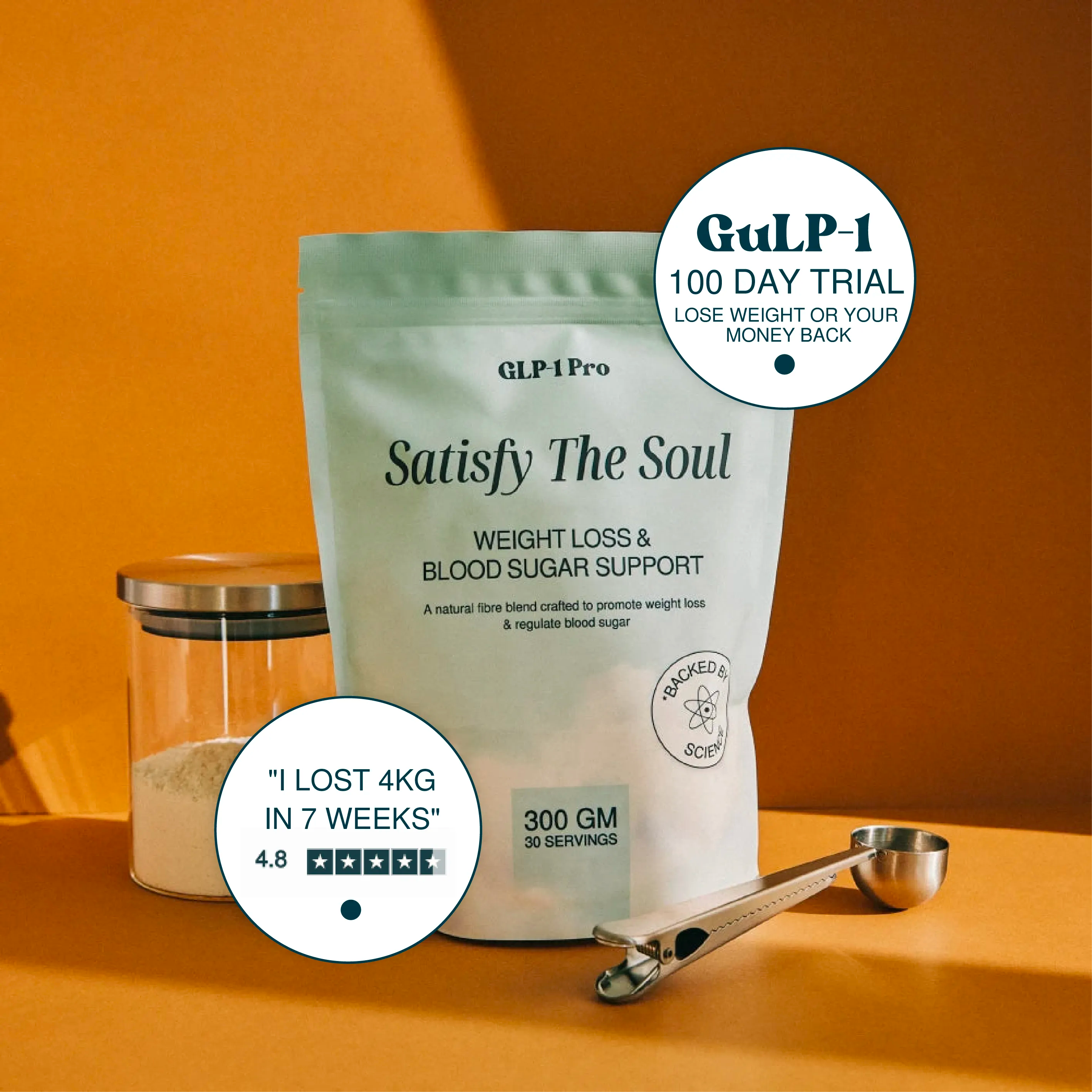 GuLP-1’s prebiotic fibres work gradually in the gut, triggering a natural, steady release of GLP-1 — the body’s own appetite-regulating hormone. This slow, sustained activation helps reduce cravings and supports long-lasting hunger control between meals.