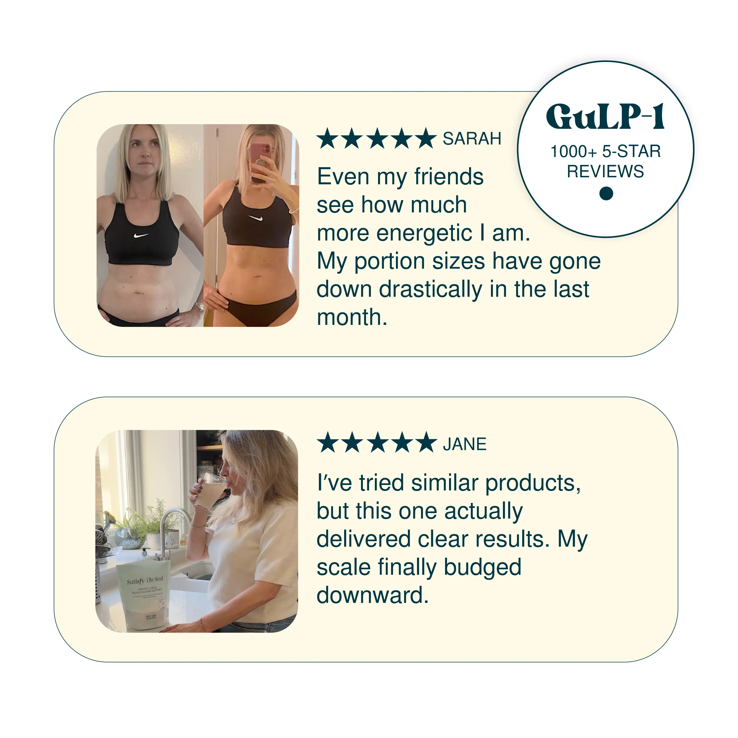 When taken daily, GuLP-1 can support healthy, sustainable weight loss alongside a balanced diet and regular movement. And with our 100-day results guarantee, you can try it completely risk-free — or get your money back. *Results...